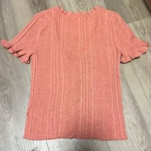American Eagle Ruffle Coral Button-Up Women's Top Size Small