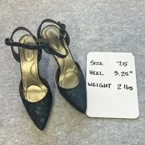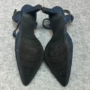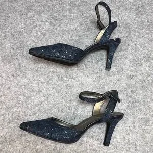 Bandolino Navy Blue Lace Glitter Pointed Toe Ankle Strap Pumps Formal Heels 7.5M