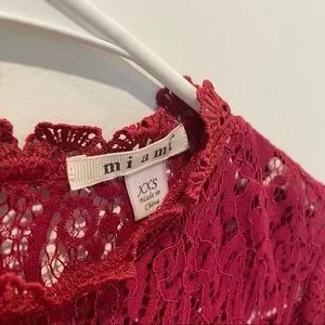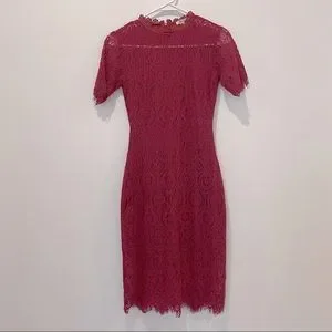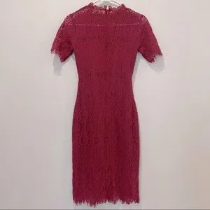 Romantic Raspberry/ Dark Purple Pink Lace Midi Dress in XXS