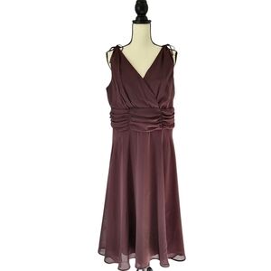 Connected Woman brown ruched waist v neck sleeveless knee length dress size 14W