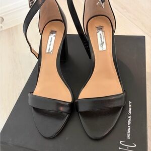Chic black heels with ankle strap. Sleek design for versatile wear. Ideal for elevating any outfit. Worn once.