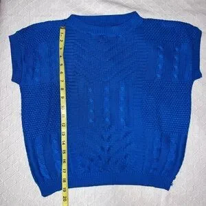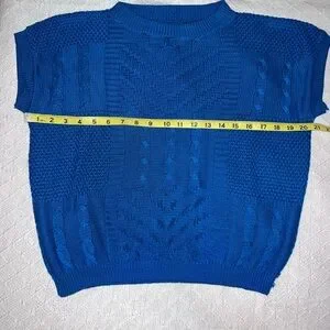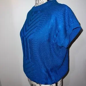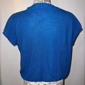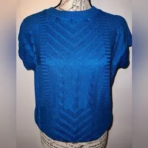 Vintage Vibrant Azure Blue Textured Knit Short Sleeve Top Small
