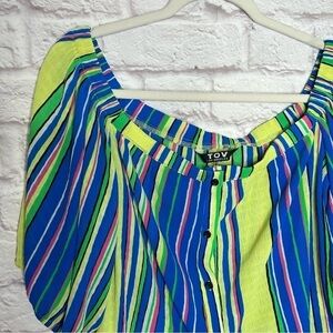 TOV Los Angeles Striped Off Shoulder Button Down Top