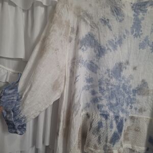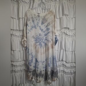 Elevate your style with this boho chic tie-dye tunic. Featuring a blend of blue and cream, this top offers a relaxed fit perfect for any casual outing.