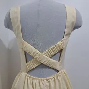 Rihoas Square Neck Criss Cross Back Sleeveless Midi Dress Light Yellow Small NWT