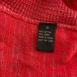 Alyx Open Cardigan Cropped Shrug Style Open Front Batwing Sleeve Women’s Plus 1X Poppy Coral Metallic Sparkly