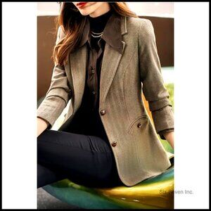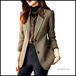 A tailored slim-fit blazer featuring a timeless herringbone plaid pattern and structured silhouette. Designed for versatile wear from the office to daily outings, offering a polished look with modern comfort.
