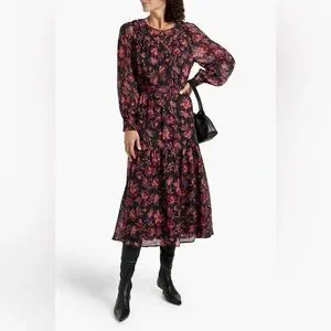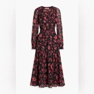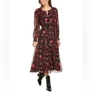 NWT Derek Lam 10 Crosby Tracy Black Floral Printed Midi Dress, Size 14