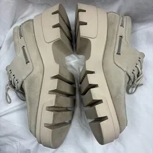 60mm Heel. Suede upper. Front lace-up closure. Reinforced eyelets. Size 41 which fits US 9.5-10.