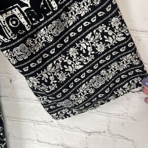 Merona Black & White Abstract Elephant Tassel Kimono Cardigan Sz M/L