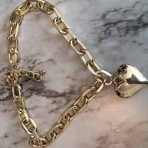 Chunky Heart Necklace Statement Necklace with Big Puffy Heart Gold Tone