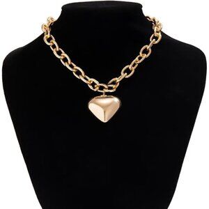 Chunky Heart Necklace Statement Necklace with Big Puffy Heart Gold Tone Fashion Jewelry: