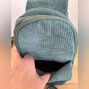 No Boundaries Teal Green Corduroy Sling Back Bag, NWT