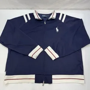 Polo Ralph Lauren Mens XXL Full Zip Blue White Track Jacket Pony Preppy