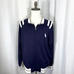 polo ralph lauren jacket, mens xxl track jacket, blue white zip jacket, pony logo jacket, preppy menswear, classic polo style, athletic casual jacket, sporty preppy outfit, ralph lauren full zip, mens layering piece, Polo Ralph Lauren jacket, men's XXL track jacket, blue white zip jacket, sporty outerwear, embroidered pony logo, athletic casual jacket, preppy fashion jacket, classic streetwear, classic sport style, relaxed everyday outerwear, collegiate style jacket, varsity inspired jacket, everyday athletic, modern preppy outfit, casual layering piece, heritage fashion staple, classic Ralph Lauren style.