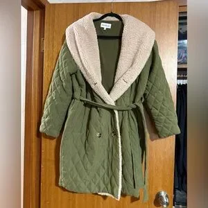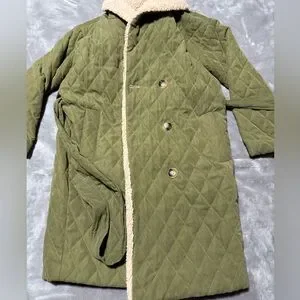 Heartloom coat, XS Olive and cream.