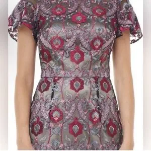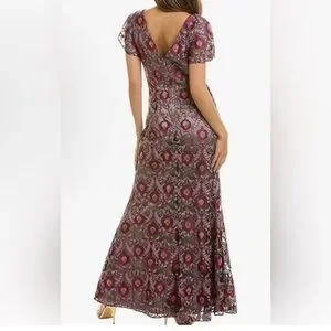 Step out in style with this elegant purple patterned dress. Perfect for any occasion, this dress offers a flattering fit and a sophisticated look.