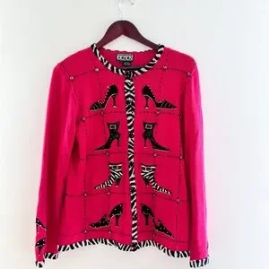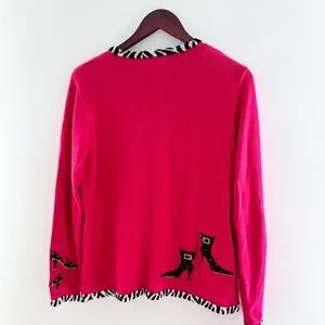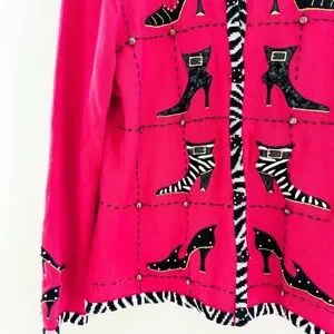 Vintage Hot Pink Zebea Shoe Cardigan – Size Large