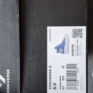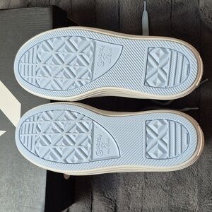 Chic high-tops with a light blue hue and cross stitch embroidered roses. 2 roses per shoe. The colour on the box says Wet Stone, but it's a light blue colour. Size 8.5 women. Brand new in box!