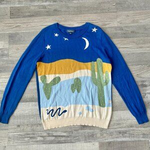 Modcloth Desert Cactus Blue Long Sleeve Sweater Size XL Lightweight J14