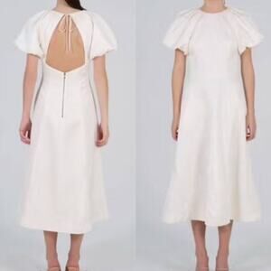 Rebecca Vallance Aimee Open Back Sateen Midi Dress In Ivory Size 2