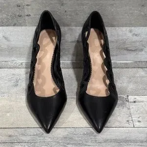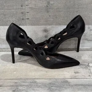 Heart-shaped cutouts accentuate the scalloped topline of a romantic stiletto pump complete with a pointy toe.
