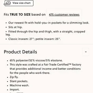 New Without Tags Slim Crop Ruby Pant. Bought, washed, never wore. Now too big.