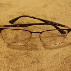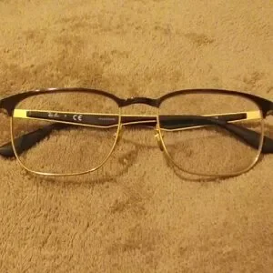 Elegant Ray-Ban glasses with a sleek black and gold design. Ideal for a modern look.
