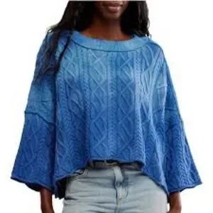 GENLTY USED Chic blue poncho with cable knit design. Perfect for layering.