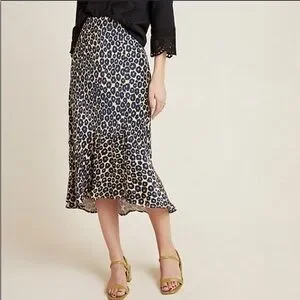 Anthropologie Maeve Janelle Leopard Bias Slip Skirt Silky with Slit Size xs