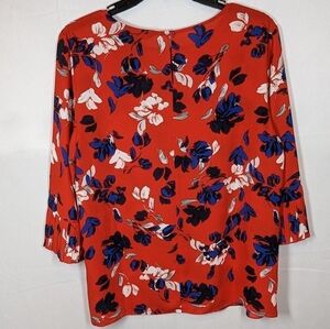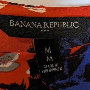 Banana Republic Red Floral Round Neck Blouse Top Women’s Size M