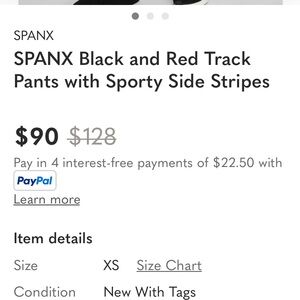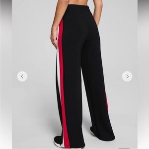 Chic black joggers with striking red and white side stripes. Perfect for a sporty look.spanx xl