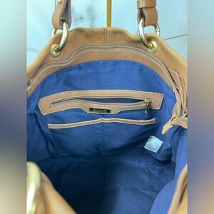 Cour Art Brazilian Leather shoulder and crossbody Tote Bag, gently used, in caramel color,the leather is very soft. Good condition shows normal signs of a gently used bag, zipper work perfectly, super clean, lots of room for your things. The only detail is that on one of the front pocket’s hardware a little piece is broken, but it doesn’t affect the pocket to close and open because the hardware is only for decoration and it’s not really noticeable. See pictures for reference. Retail prices is $350