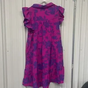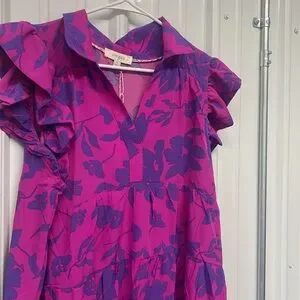 New with tags, magenta/purple, collared, floral, tiered, polyester/spandex