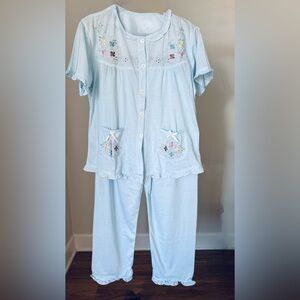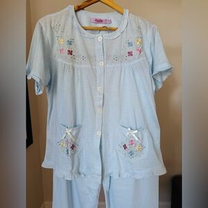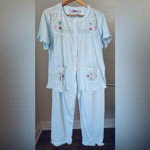 💙 Beautiful vintage cotton pajama set by Shangrila, in a soft light blue shade.
