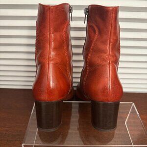 Genuine Leather Women Ankle Boots Size 9 Brandy Square Toe Zipper Block 2" Heel