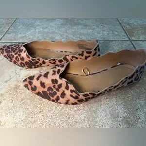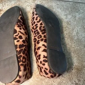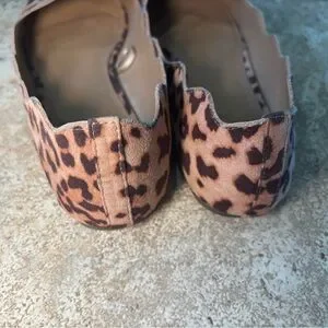 Stylish leopard print flats. Pointed toe design. Perfect for a bold look.