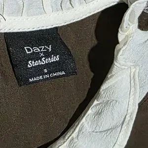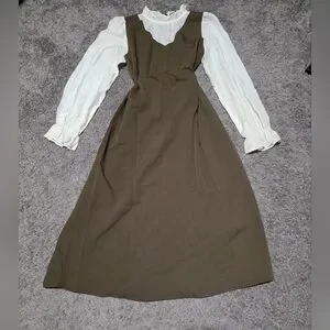 GUC DAZY Elegant brown dress with white long sleeves. Perfect for any occasion.