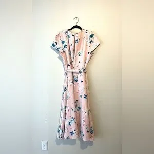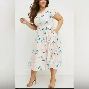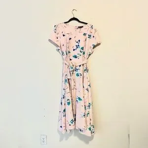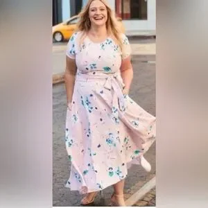 Lane Bryant Light Pink Floral Short Sleeve Dress size 16 tie waist