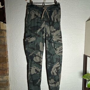 Stylish and rugged camouflage cargo pants. Ideal for outdoor activities. Features multiple pockets for convenience.