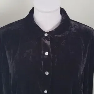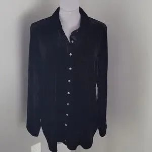Talbots Black Velvet Button Front Shirt Sz L