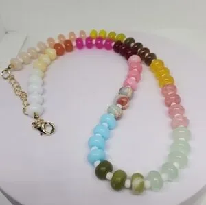 NEW!! Anthropologie Rainbow Multicolor Beaded Stones Gold Plated Necklace