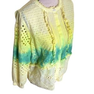 Zara Aida Blouse Custom Tie Dyed Yellow & Green Large