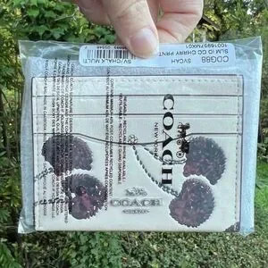 Keywords: Coach, ID holder, document holder, Leather, multicolor, cherry print, unisex, luxury, card slots, new with tags.