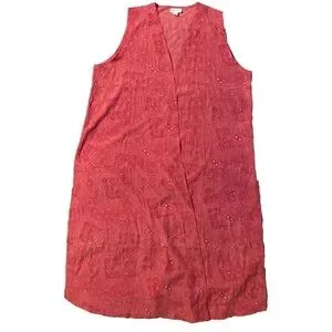 Design Features: It features a sleeveless cut, side slits, and has a relaxed, open-front fit.