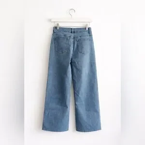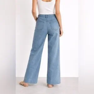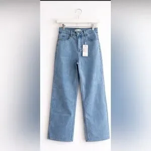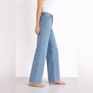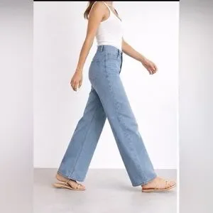 Nuevo con etiquetas. Jeans ETTELO tiro alto estilo pierna ancha en un hermoso azul claro. Mezclilla suave con elasticidad que se ajusta a la cintura y cae con una silueta amplia y favorecedora. Cómodos y modernos para cualquier ocasión.