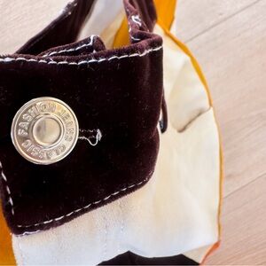 Stylish colorblock patchwork pants featuring black, white, orange, and yellow panels. Super cool design and really comfortable.