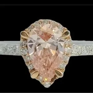 This stunning teardrop 14K white gold ring features a captivating pink stone. Perfect for adding a touch of elegance to any outfit.