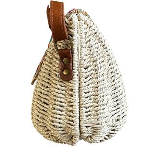 Brand New Women’s Cream Basket & Faux Brown Leather Purse w/ Colourful Beads