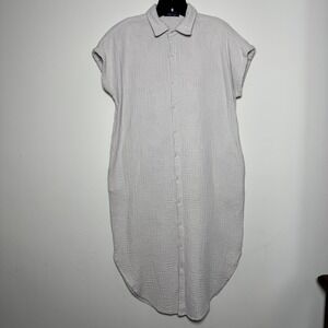KLD Cotton Gauze Button Down Midi Shirt Dress Beige S/M Pocket Beach Coverup